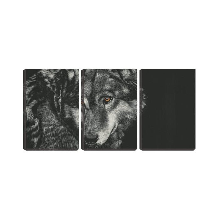 Quadro canvas 30x66 desenho de lobo fundo preto