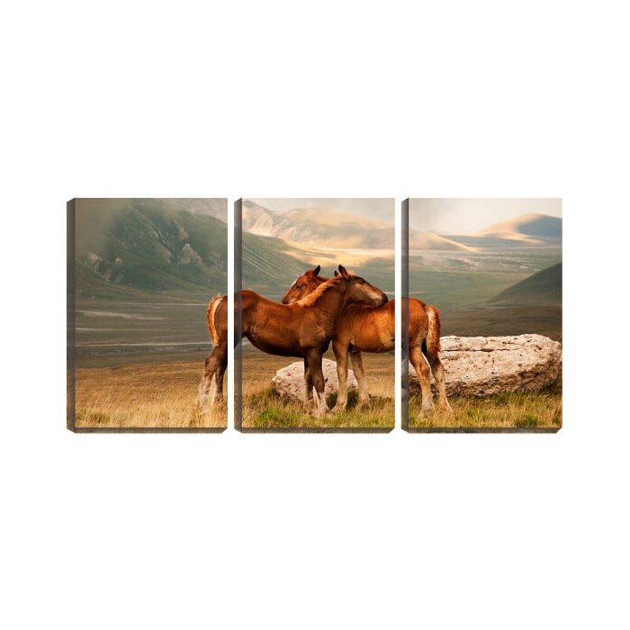 Quadro canvas 30x66 dois cavalos ao pé da montanha