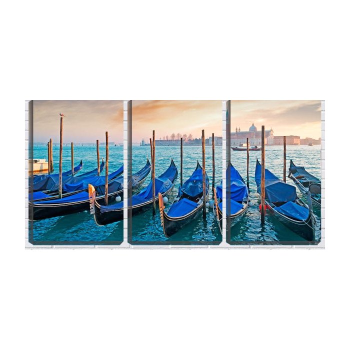 Quadro canvas 30x66 nove gôndolas azuis de veneza