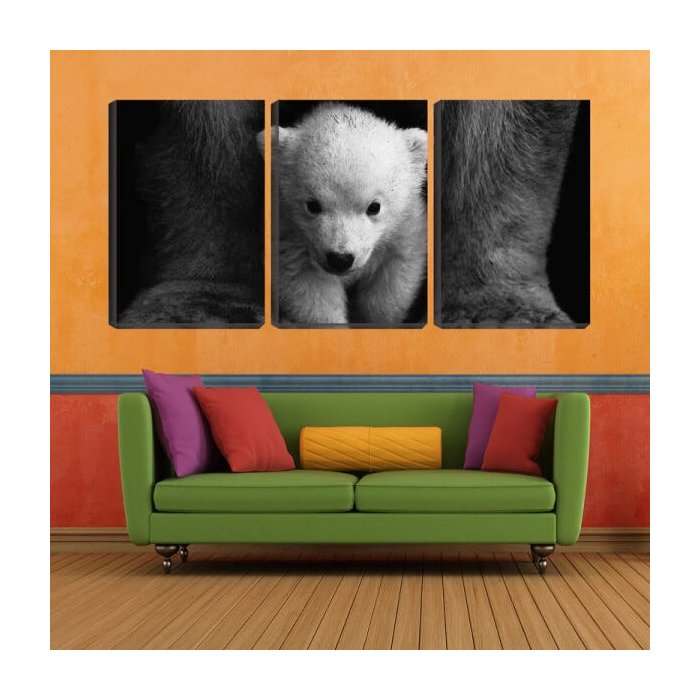 Quadro canvas 30x66 pequeno urso aos pés da mãe