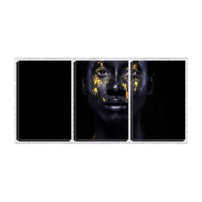 Quadro canvas 30x66 rosto negro com manchas amarelas