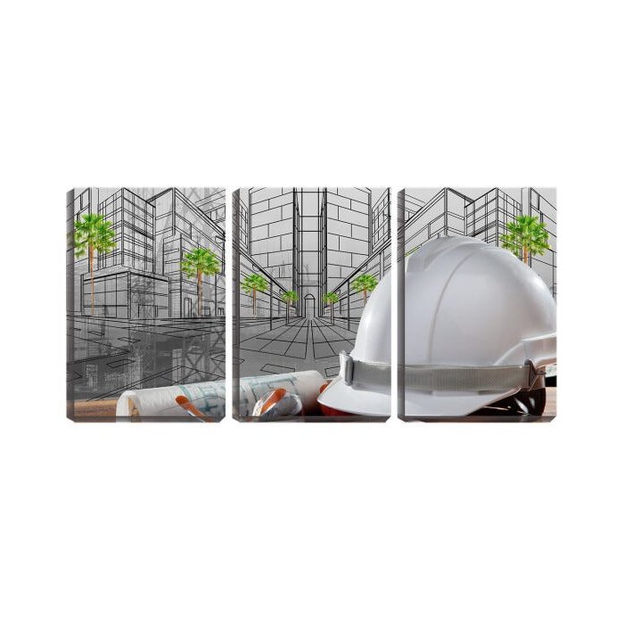 Quadro canvas 45x96 capacete branco e plantas