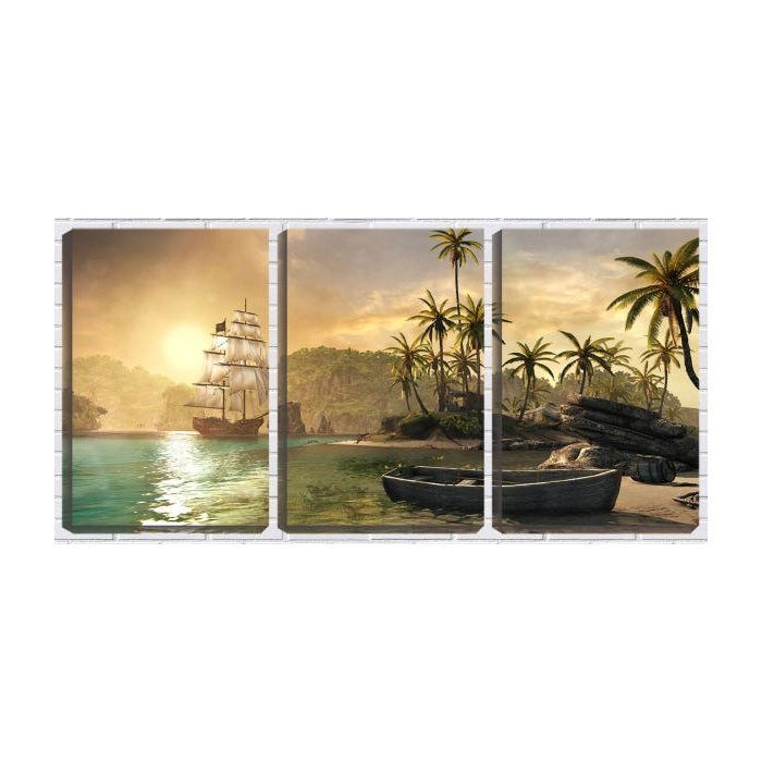 Quadro canvas 45x96 caravelas chega em terra firme arte