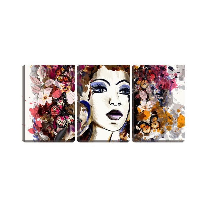 Quadro canvas 55x110 desenho mulher cabelo florido
