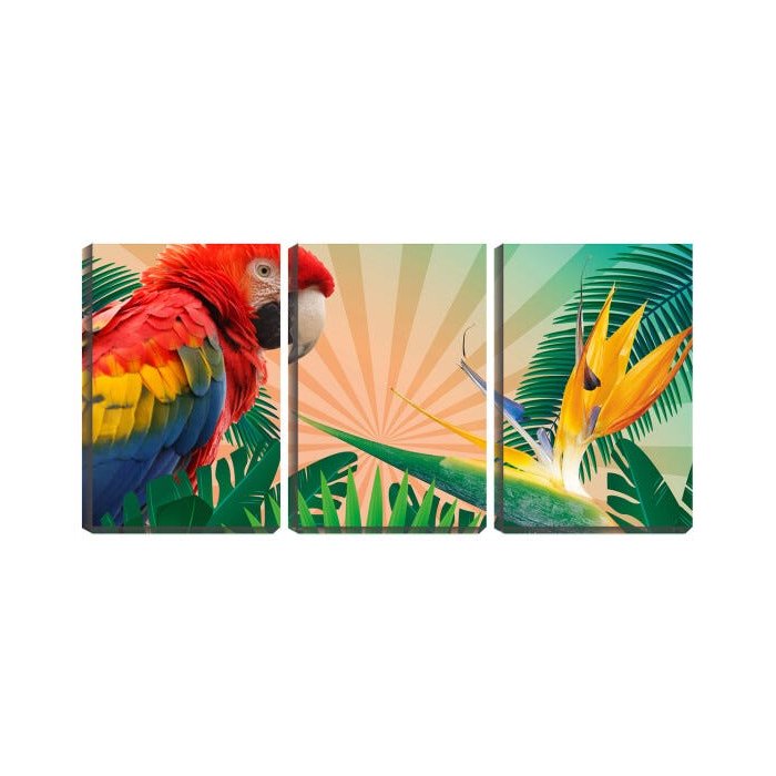Quadro canvas 68x126 arara entre folhas verdes arte