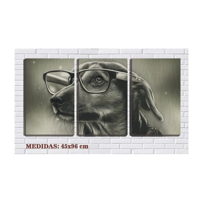Quadro canvas 68x126 arte cachorro de óculos