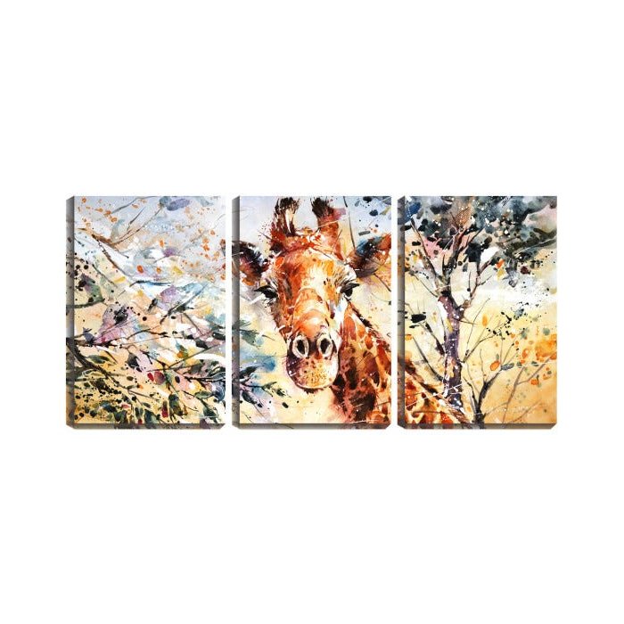 Quadro canvas 68x126 arte girafa desenho aquarela