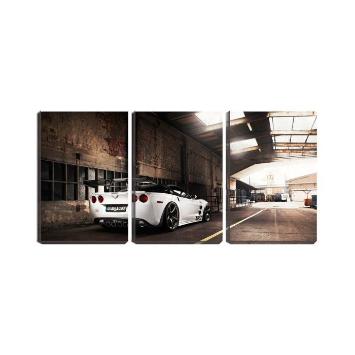 Quadro canvas 68x126 carro branco no galpão