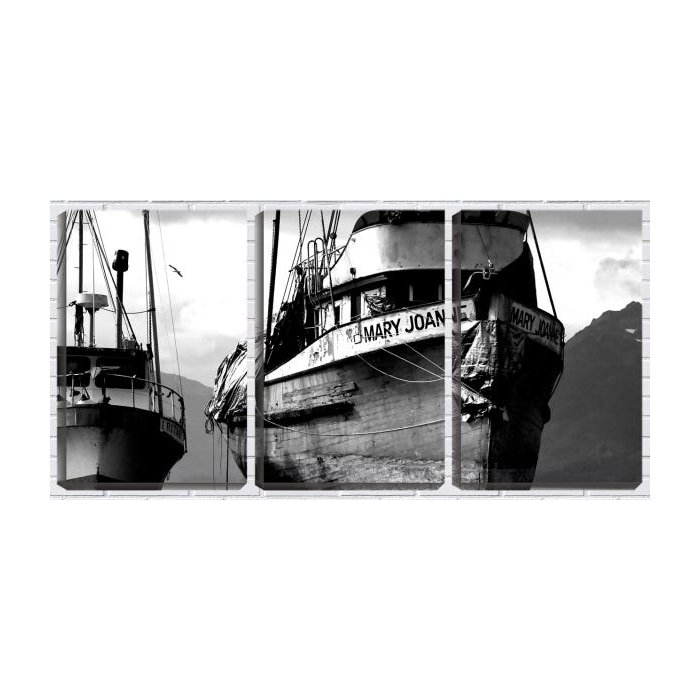Quadro canvas 68x126 dois barcos pesqueiros arte pb