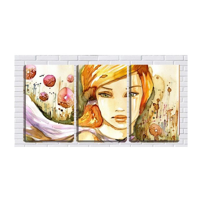 Quadro canvas 68x126 face de mulher arte aquarela