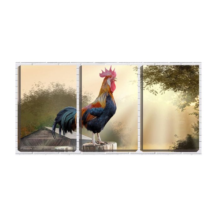 Quadro canvas 68x126 galo no tronco de cerca arte