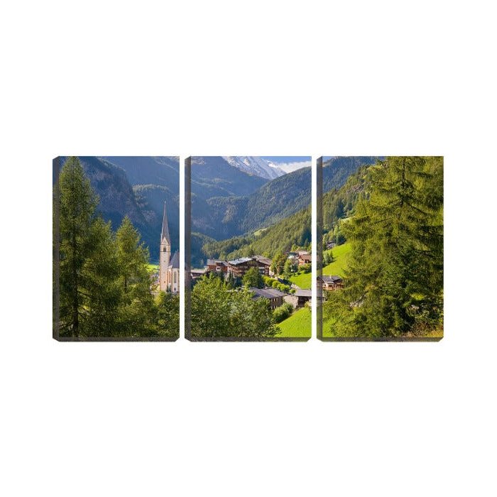Quadro canvas 68x126 igreja entre montanha e pinheiros