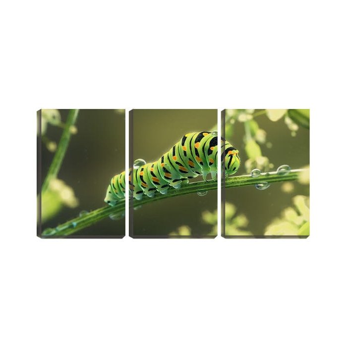 Quadro canvas 68x126 lagarta colorida em galho verde