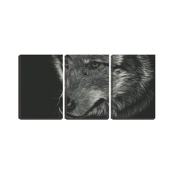 Quadro canvas 68x126 olhar de lobo fundo preto