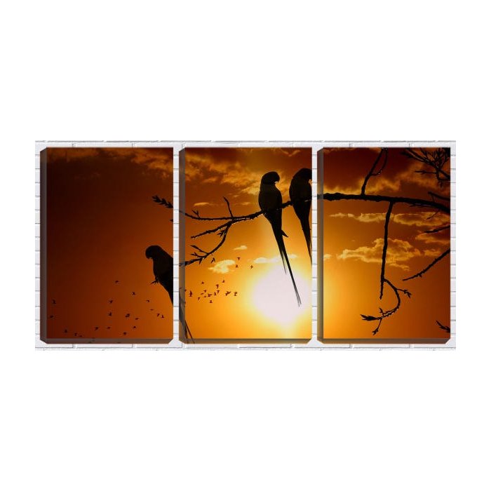 Quadro canvas 68x126 silhuetas de araras no galho