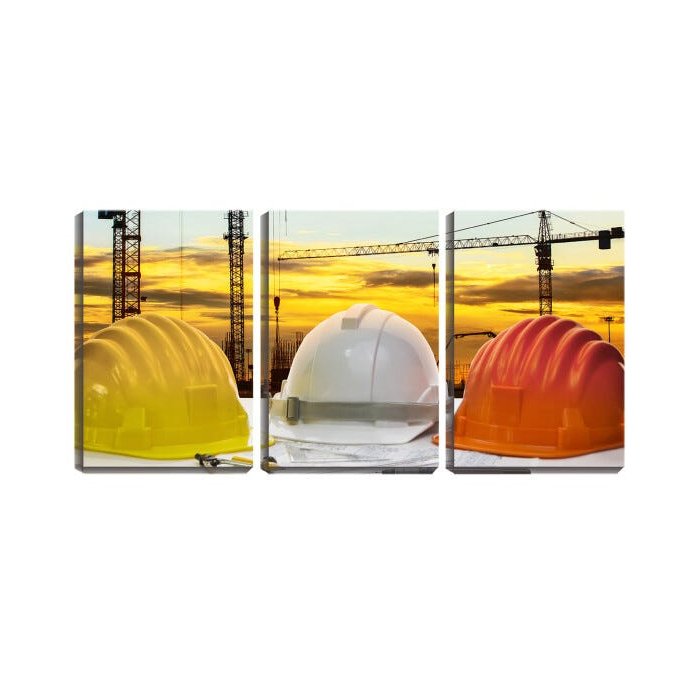Quadro canvas 68x126 três capacetes de engenheiros obra