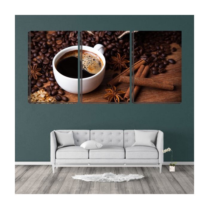 Quadro canvas 68x126 xícara entre grãos e chocolate