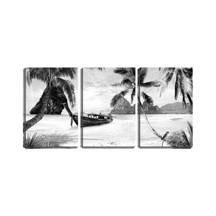 Quadro canvas 80x140 barco pb na praia da Tailândia