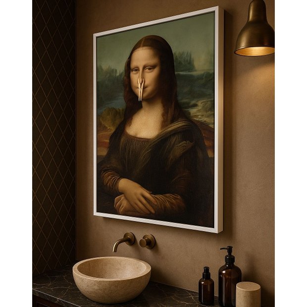 Quadro Canvas Divertido Banheiro Monalisa Nariz-mold.branca:40x30cm Branca