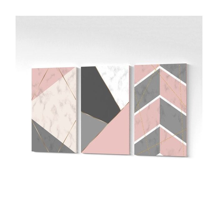 Quadro Canvas Geométrico Colorido Rosa e Dourado 125x65cm