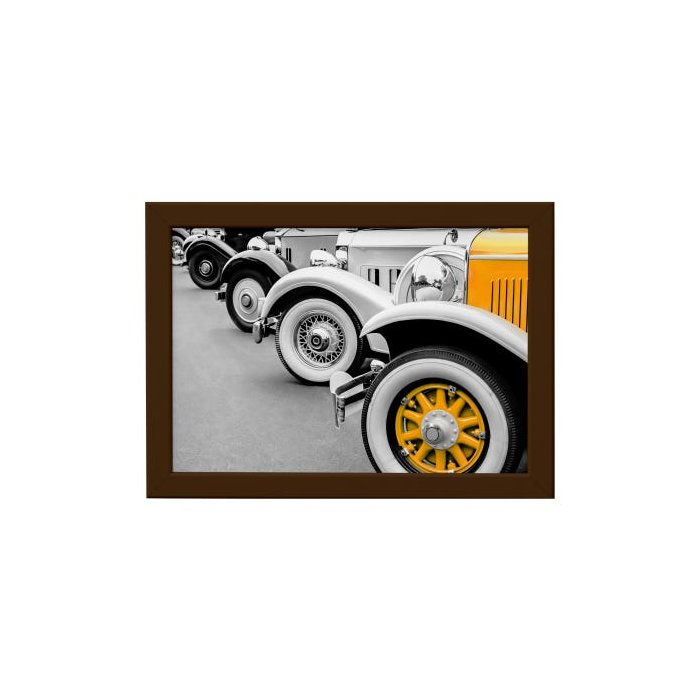 Quadro Carro Antigo Amarelo Foto Moldura Marrom 22x32 Cinza