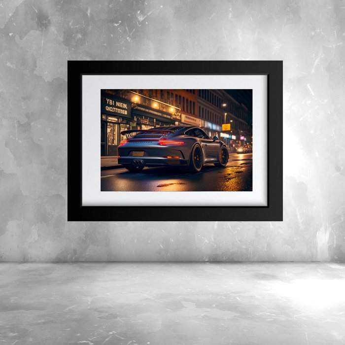 Quadro Carro Moderno Preto Esportivo - 60x48cm:moldura Preta Moldura Preta