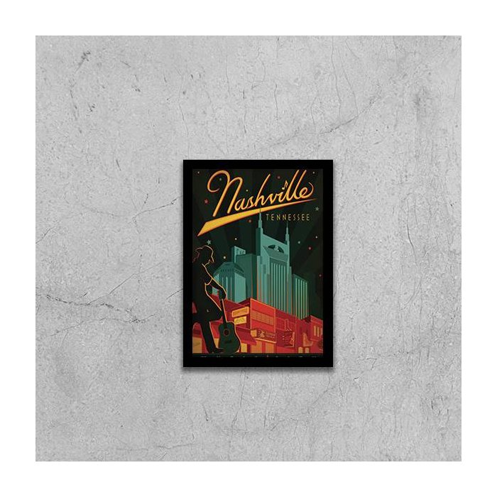 Quadro Cartaz Retrô Nashville 45x34cm - com vidro:Madeira preta
