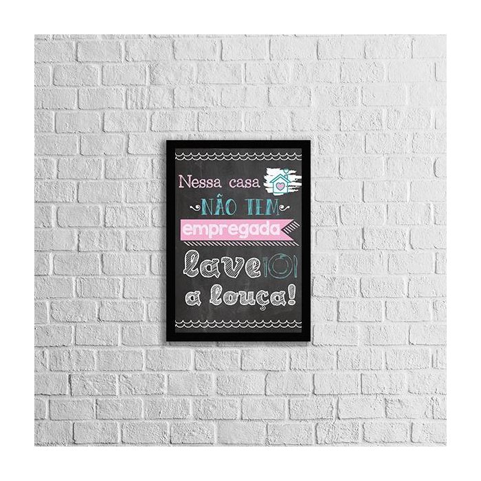 Quadro Casa Não Tem Empregada. Lave a Louça 45x34cm - com vidro:Madeira preta