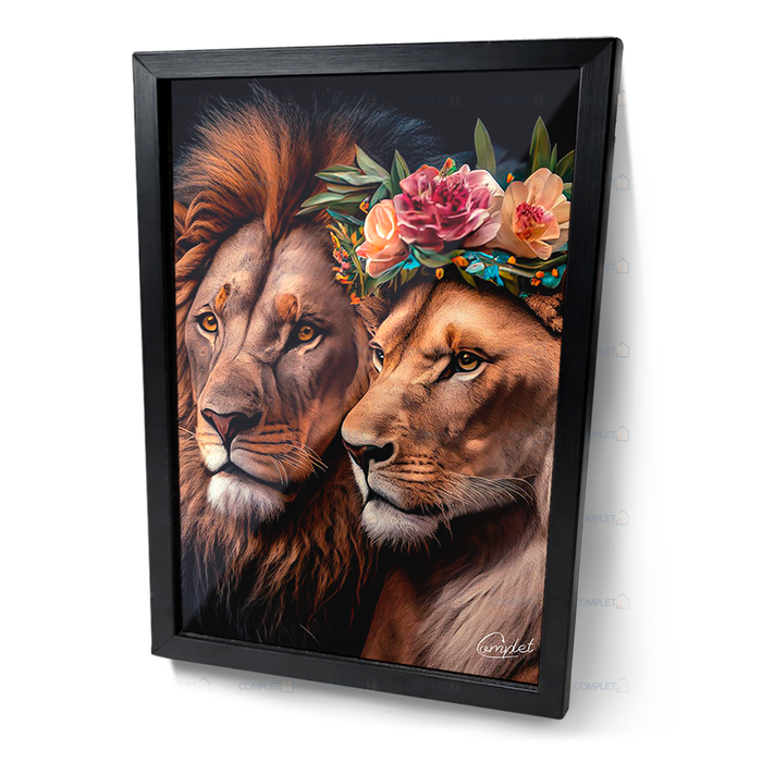 Quadro Casamento Leão e Leoa Moldura e Vidro