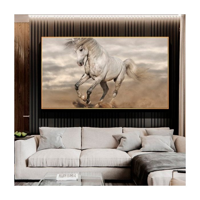 Quadro Cavalo Branco Impactante - Tela Única - 90 x 60 cm - Branca