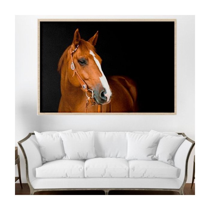 Quadro Cavalo Fundo Preto - Tela Única - 200 x 120 cm - Branca