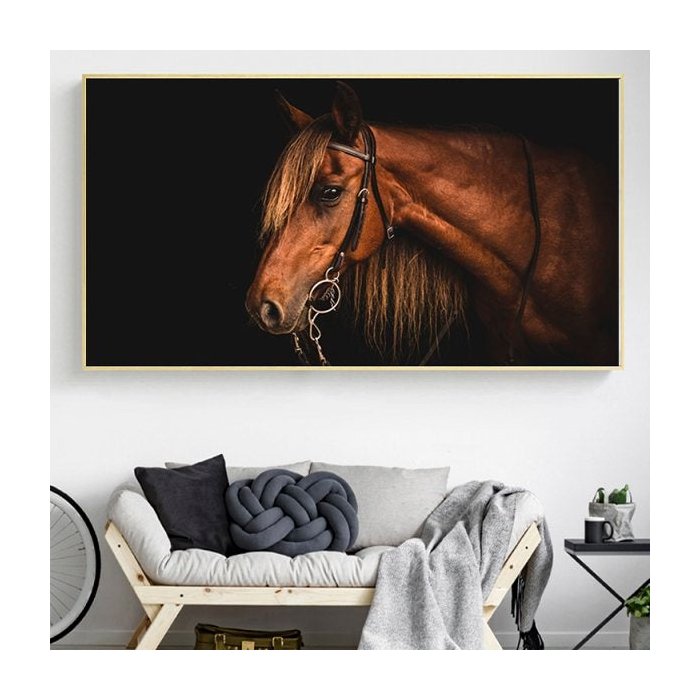 Quadro Cavalo Perfil Fundo Preto- Tela Única - 90 x 60 cm - Chassi