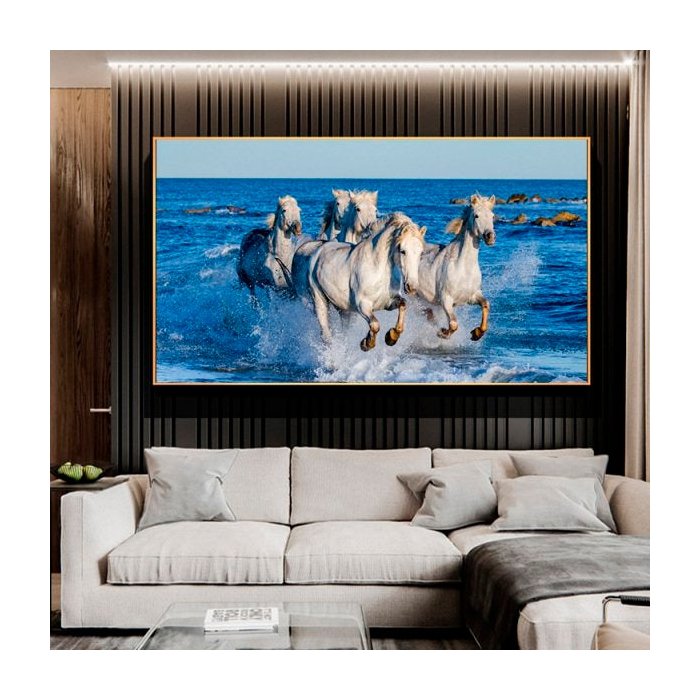 Quadro Cavalos Galopando no Mar - Tela Única - 150 x 100 cm - Chassi