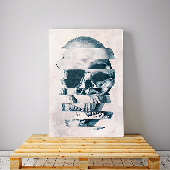 Quadro Caveira Preta e Branca - Tela Canvas com Moldura Flutuante em Vários Tamanhos - Artfine