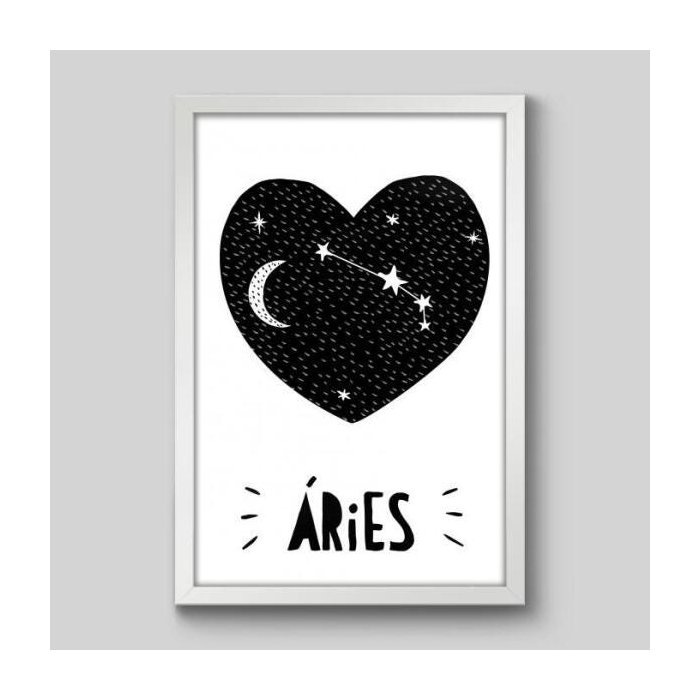 Quadro Céu do Signo Áries - 30x20cm - Moldura Padrão Branco