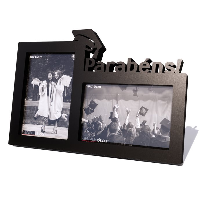 Quadro Chapéu Beca Decoração Formatura Presente Formandos Fotos Porta-retrato 10x15 Geniale Decor Preto