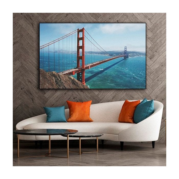 Quadro Cidade Ponte Oceano Paisagem - Tela Única - 150 x 100 cm - Preta