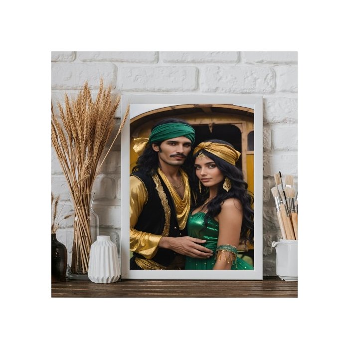 Quadro Cigana Esmeralda e Cigano Wladimir 45x34cm - com Vidro:moldura Branca