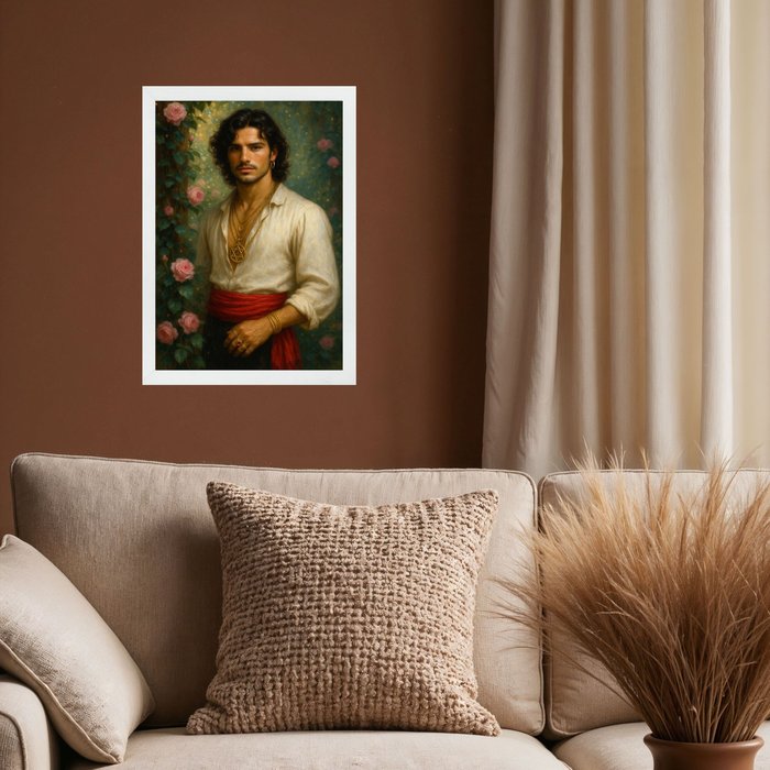 Quadro Cigano Wladimir com Flores 24x18cm - com Vidro:moldura Branca