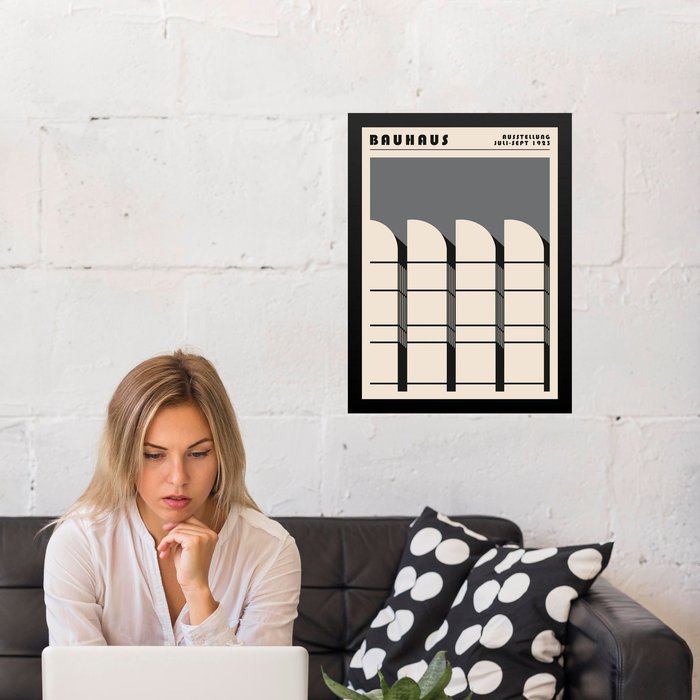 Quadro Cinza Arquitetura - Bauhaus 24x18cm - com Vidro:moldura Preta Moldura preta