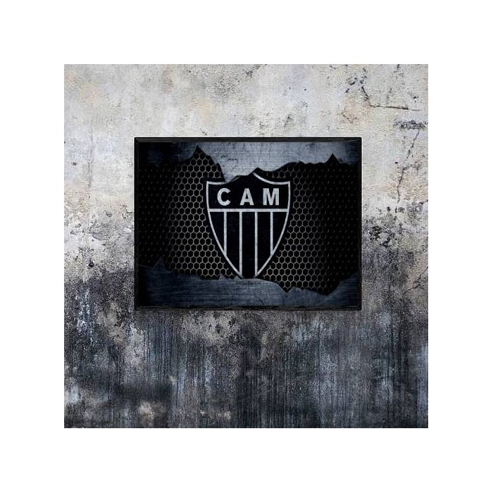 Quadro Clube Atlético MG Fundo Aramado 24x18cm - com vidro:Madeira preta Madeira preta