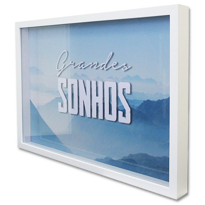 - Moldura: largura 2 cm, espessura 4,5 cm e espaçamento interno cor branca de 4 cm.