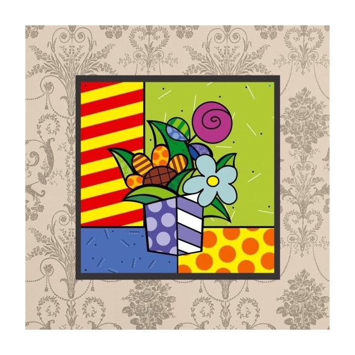 Quadro Com Moldura 30X30 - Arte Vaso De Flores Romero Britto
