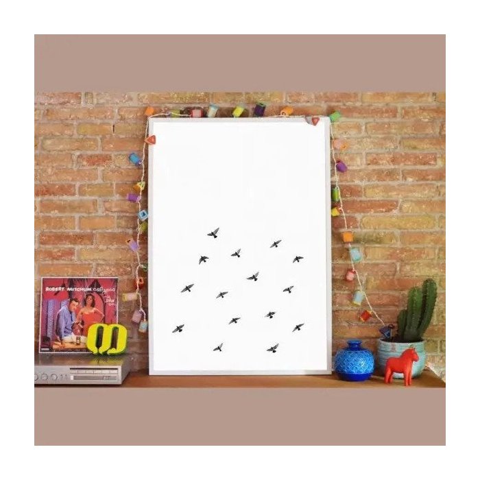 Quadro decorativo com moldura, Quadro com Moldura Aves Pombos Voando.