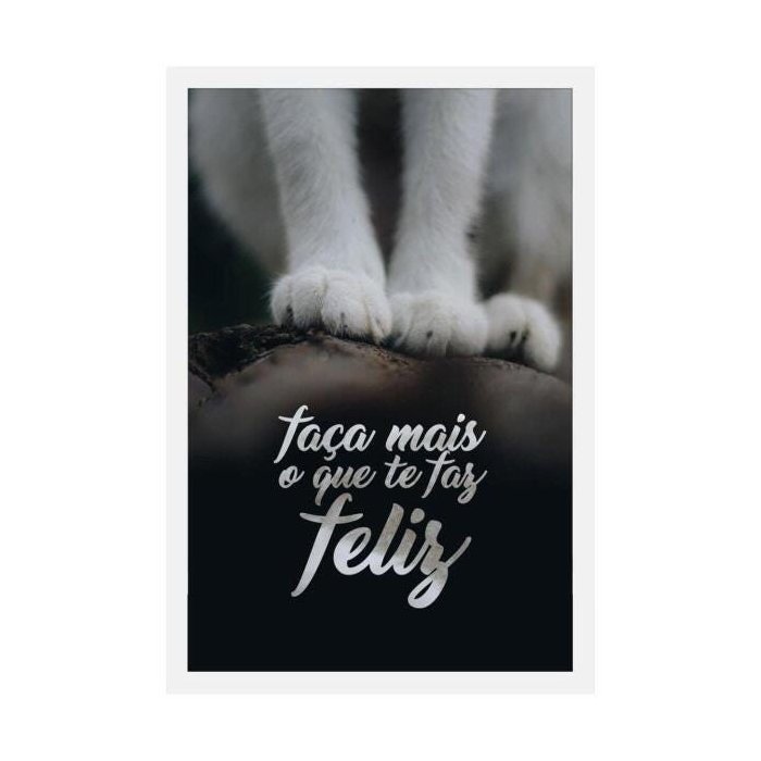 Quadro com Moldura Branca Patas de Gato e Frase Faça Mais o Que te Faz Feliz 40x60cm