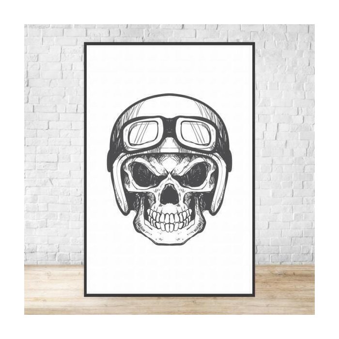 Quadro decorativo moderno, fabricado em mdf 6mm e molduras em mdf 15 mm. Com gancho para pendurar invisivel Quadro decorativo com moldura skull caveira piloto moto custom motoclub 40x60cm Fundo branco