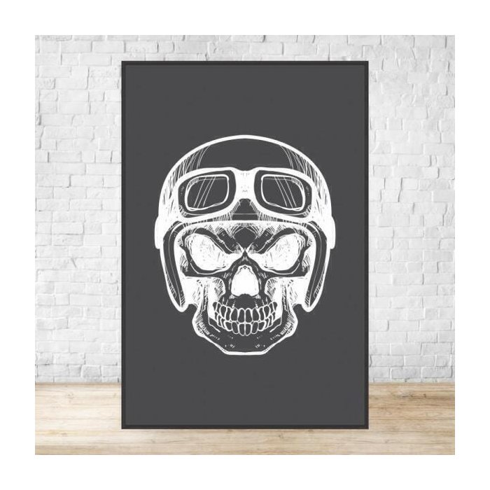 Quadro decorativo moderno, fabricado em mdf 6mm e molduras em mdf 15 mm. Com gancho para pendurar invisivel Quadro decorativo com moldura skull caveira piloto moto custom motoclub 40x60cm Fundo preto