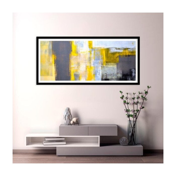 Quadro com Moldura Chanfrada Abstrato Amarelo 50x115