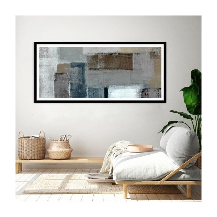 Quadro com Moldura Chanfrada Abstrato Cinza e Bege 40x100