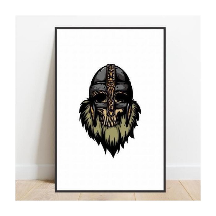 Quadro com moldura elmo viking barba medieval 40x60 Mix